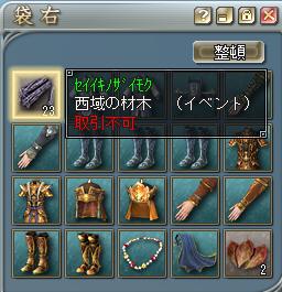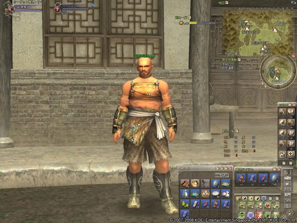 こんにちわぁ~ これから農業に全力投球予定の葵ですw ”涼州”の敵NPCを倒すと、一定の確率で”西域の材木”が手に入りま~す! ついに交換期限が、明日の25日10:30までとなりました! ”大きなつづら”交換期間 2008年9月25日(木) 10:30まで(予定) 抽選会開催期間 2008年9月25日(木) 16:30(予定) ~ 10月16日(木) 10:30(予定) 交換場所は、涼州“月牙酒泉”の銭荘出張所付近にいる NPC“国家特級家具師”に、”西域の材木”を10個持った状態で 話し掛けると、アイテム”大きなつづら”1個と交換してもらえます。 ↑このおっちゃんですねw まだ交換してない人や、端数が余ってる人は”涼州”へ狩りと交換に急ぎましょ! 運が良ければ抽選で、特賞の”三国制覇屏風”(部曲砦用家具)がもらえます♪ 外れた人は、以下のいずれかを参加賞として一つもらえます^^;