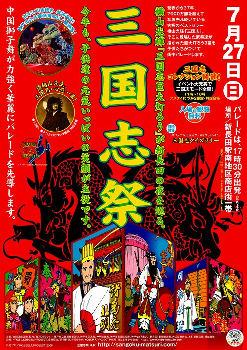 こんにちわぁ~ 来月開催予定の前橋(群馬展)に行こうか迷っている葵でし^^; ちなみに名古屋の入場者数が、開会から3日で1万人を超えた らし~です♪(⌒▽⌒) ノ☆・゜:*:゜ 2月1日まで名古屋開催なので、お近くにお住まいの人は足を運んでみてはいかがでしょ? そんな去年から今年にかけて三国志イヤー(他のサイトでそう書いてますた)が続いていますけど 昨日、書店に行ったらこんなものを見つけますた♪ 2007年3月から毎月1巻ずつ愛蔵版として発売されていまふ♪ 全30巻で葵が見つけたのは21巻でしたが、本の価格は1,575円(税込み)ですた・・・ 他にも三国志関連の本があると思いますけど、葵は横山三国志しか知りませんでし(’’ そんな横山光輝三国志のお祭りを見つけたのでご紹介しま~す! (知ってる人も多いと思いますけど・・・) コレは昨年のポスターになりまふ^^ 今年は第三回の開催予定らし~ですが、場所は神戸なんですよねぇ・・・orz 「漫画」三国志の横山光輝先生の故郷なので、毎年神戸で実施されていまふ。 サイトもありましたので、興味のある人はご覧下さ~い♪ (リンクバナーを貼り付けておきますた!) 押してもらえると、更新の励みになりま~す♪ ↓ ↓