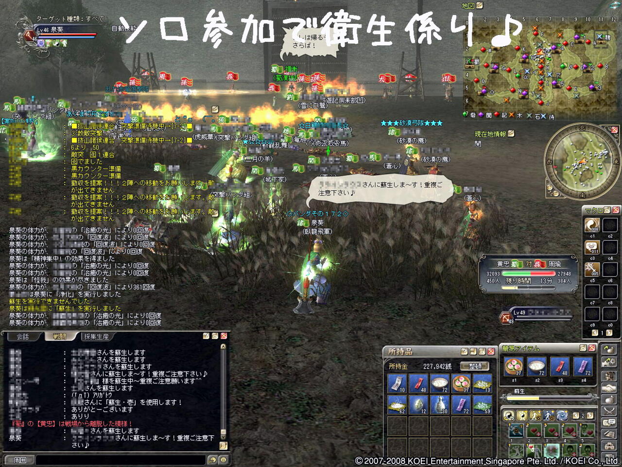 こんにちわぁ~ 昨日は忘年会でした葵でし!o口(・ω・`)ゴクゴク 昨日は半分酔った状態で合戦に参加しました(; ̄ー ̄A アセアセ・・・ 呉と制覇戦でしたのでどうぞ~♪ 1陣で~す! 遅れての参加なので、ソロ丹でした(久しぶり)^^ 自由に動いて蘇生や浄化・回復係りでちょこちょこしてますた・・・ 忍者ブログ [PR]