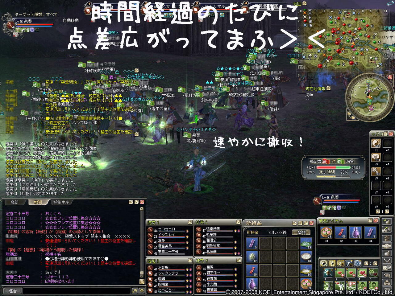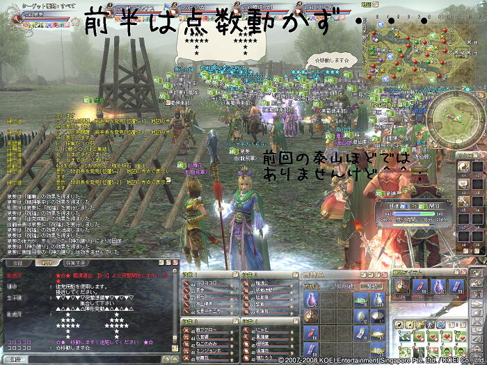 こんにちわぁ~ 今年の女の子第一位は『葵』でした泉葵でし♪ ちなみに男の子第一位は『大翔(ひろと)』だったよ~です・・・(どうでもいいネタでスミマセン><) 話を『三国志オンライン』へ戻しまふ・・・汗 ━(il`・ω・´;) ━タラァァ~ン 昨日は蜀の合戦がお休みで、呉vs魏の制覇戦がありますた。 泰山呉キャラで参加しましたので続きをどうぞ~! 1陣で~す♪ 泰山の合戦ではINと同時に拉致してもらえるようになりますたΣ(´Д`*) この陣は泰山呉の一体感を感じましたねぇ^^ 黄河では味わったことの無い、お互いのにらみ合いが長時間続きましたw