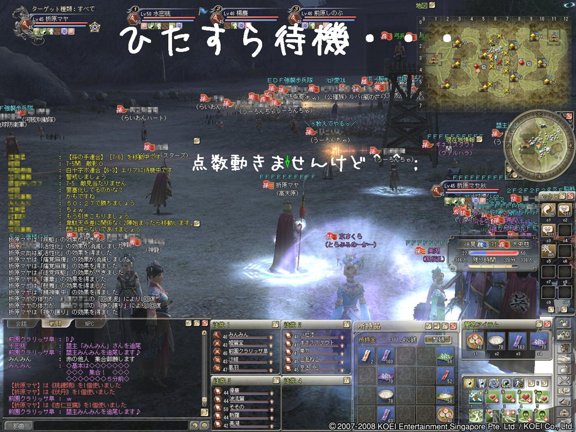 こんにちわぁ~ ネタが無くても訪問して下さる皆さんに感謝の葵でし! このブログはリンクフリーなのでご自由にどぞ♪ 中身は『三国志オンライン』ネタしかありませんので、迷い込んだ不幸な方はこれを機に 体験版でプレイをオススメしまふw このブログをカンタンに説明しますと、 ①攻略内容はほぼ皆無でし・・・(攻略は他力で教えてもらってまふ)w ②管理人は練丹しかやりません!今となっては過疎化した丹ですが、 丹を愛するブログですw ③対話・フレ登録大歓迎でし!合戦中でもど~ぞ(該当する方へ:ネタにしてスミマセン^^;) ④黄河・泰山ネタしかありません。廬山にキャラ作るヒマないので^^; 中身は薄いブログですが、今後ともヨロシクお願いしまふm(_ _)m 昨日は黄河蜀の合戦ありますた。続きをどうぞ^^ 1陣で~す♪ 突撃しても点差が広がっちゃいました>< 呉はまとまって突撃⇒即撤収⇒第二波突撃⇒即撤収でポイントを刈りとられましたね・・・ 地形もうまく使ってるなぁ~と感想を^^; 橋の手前の坂で待機して、蜀が橋を通過するタイミングを計って狙い撃ちされますた>< 忍者ブログ [PR]