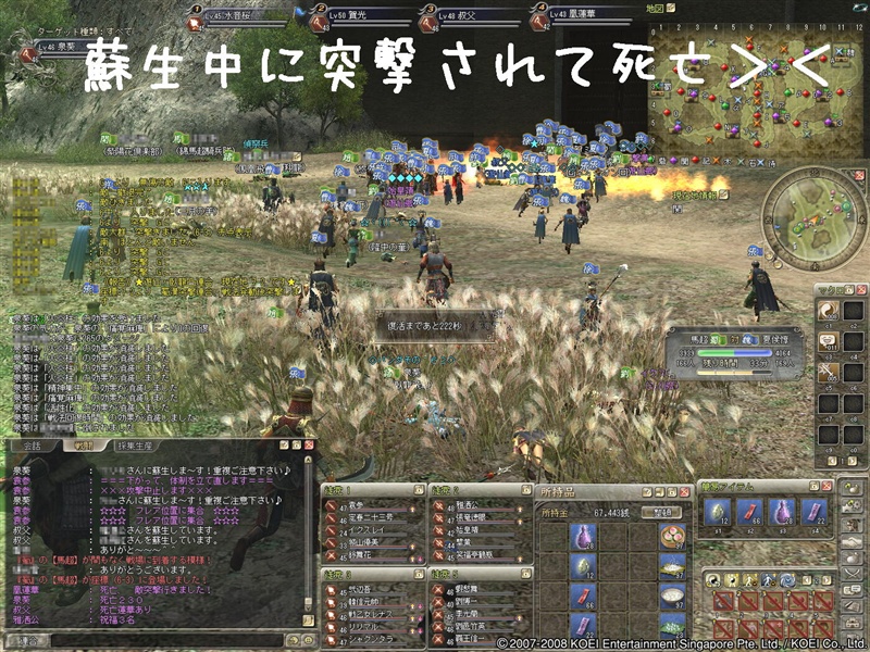 こんにちわぁ~ パソコンの中身がキレイに消えていて、ショックな葵でし(T▽T)ダァ♪ パソコンはあまり詳しくないんですけど、ドコが調子悪かったのかな?と思って修理完了書を 見てみますた・・・ ■内容■ ・マザーボード交換(パソコンの基盤みたいですねぇ~) ・ハードディスク交換(保存する場所も調子悪かったんですねぇ) ・電源ユニット交換(電源もダメだったよ~でし) ・ビデオカード交換(よくわかりませんけど、録画機能でしょか?) ・BIOSアップデートと設定(わからないのでスルー) ・OSインストール(ウインドウズの入れ直しみたいでし) なんだかほぼ全部に近い修理だったよ~な・・・o(T△T=T△T)o でも、これでカクカク合戦から復帰出来そうでし♪~♪ d(⌒o⌒)b ♪~♪ルンルン 昨日はそのカクカク合戦ありました^^; 続きをどうぞ~♪ 3陣の同時開催だったので1陣参加しましたぁ~! この合戦は過去最悪な動きで死にすぎでした(yTДT)yだあぁぁぁ~ 蘇生するのに戻りが最後くらいだったんですが、いつもなら敵の突撃した後って次の突撃まで 時間があるんです・・・ 今回は波状で突撃が多くて轢かれ死にばかりですた><